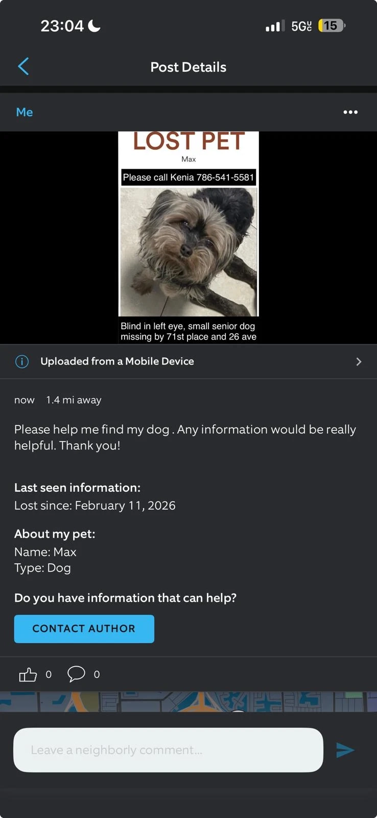 MAX is a yorkie, blind from his left eye, has a minor hunch back.