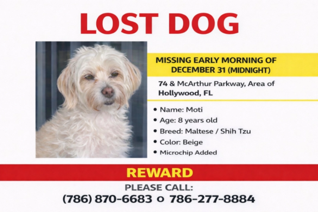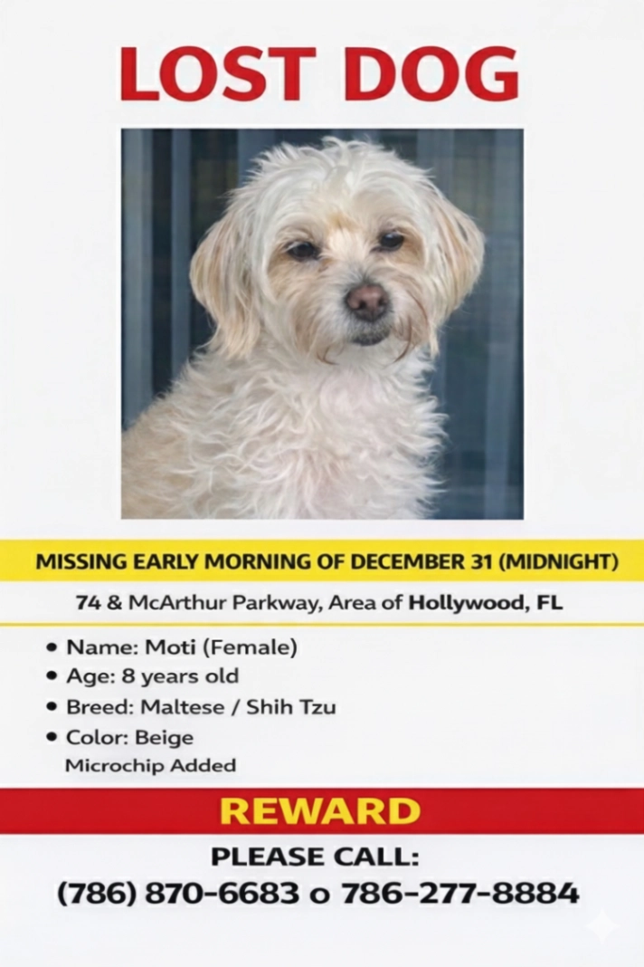 Our small dog Moti is still missing and may have reached this area.