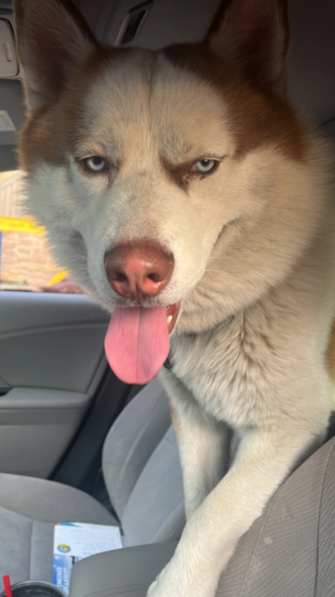 She weighs about 6 pounds, only has 2 teeth. No collar.