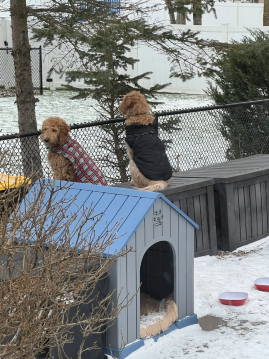 Archie is a blonde Lab ( male) Lacie is a white Perynees (female)