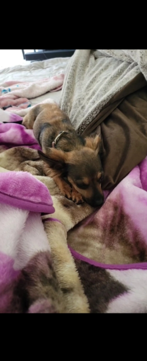 Toy/chihuahua mix dark brown with hair on ears, very timid