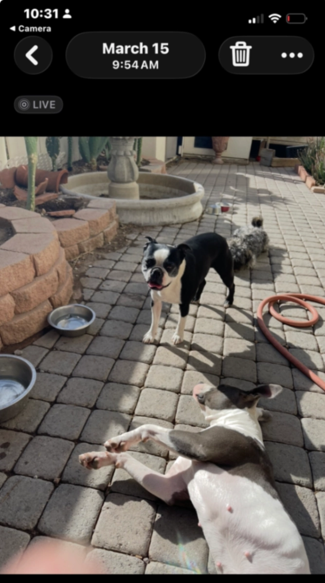 Boston terrier black & white old man takes two medications 💊 we need him home please🙏🙏