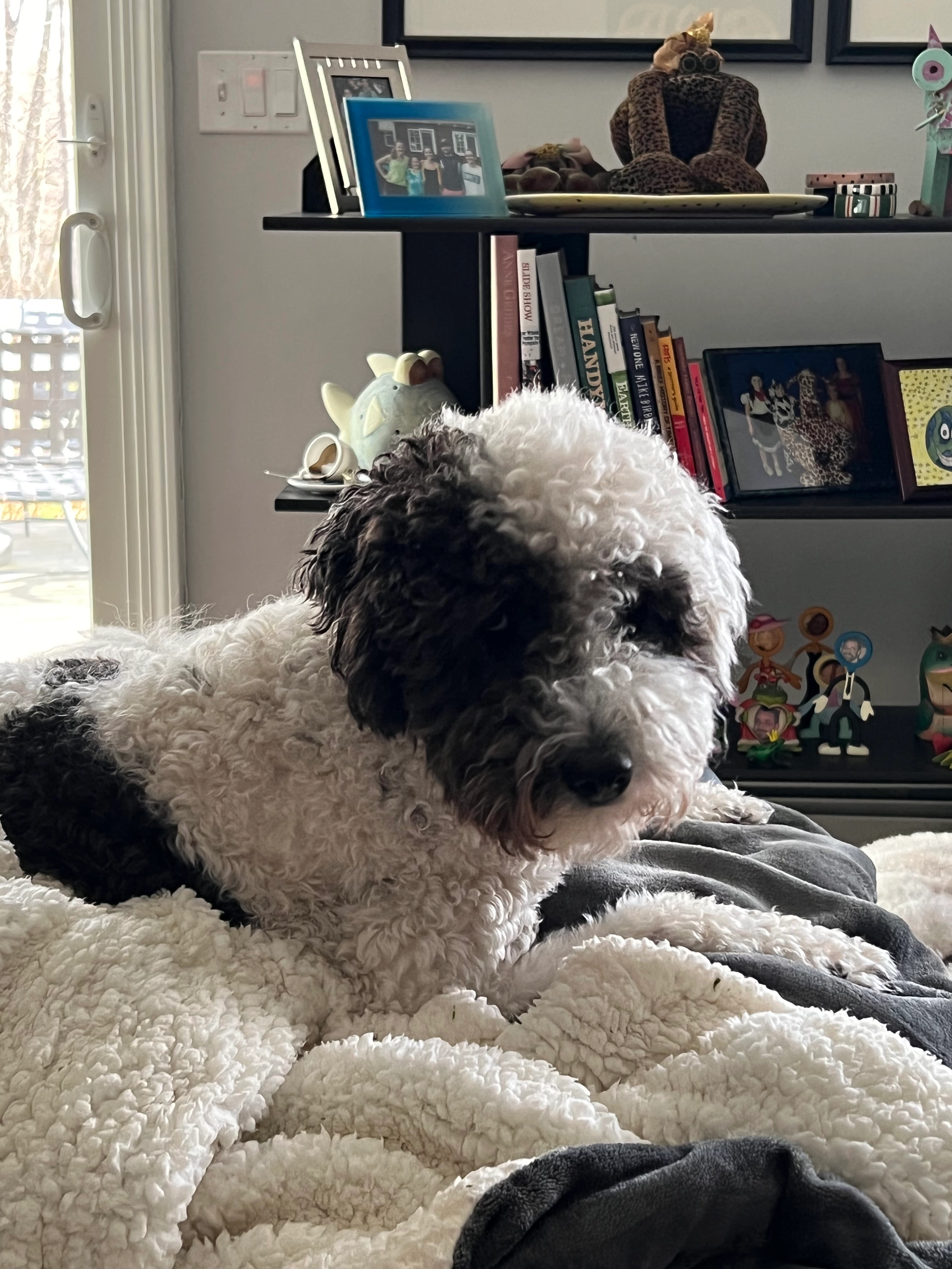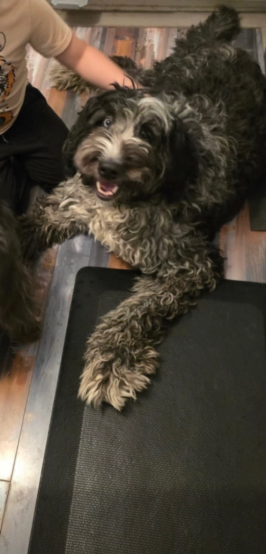 He is kind, not aggressive, likes to jump on people and he is due for his seizure meds.