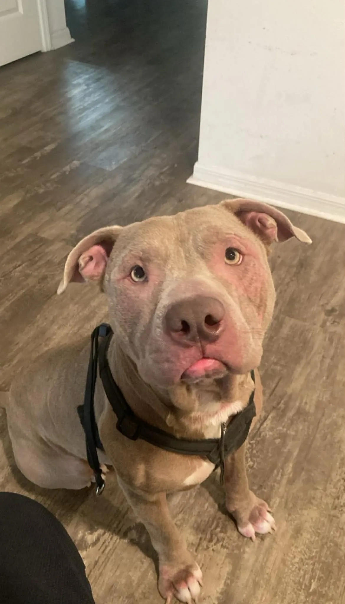 I gave her a hair cut so her hair is shorter and she has white on her chest and you feel her chest rib when you pick her up.