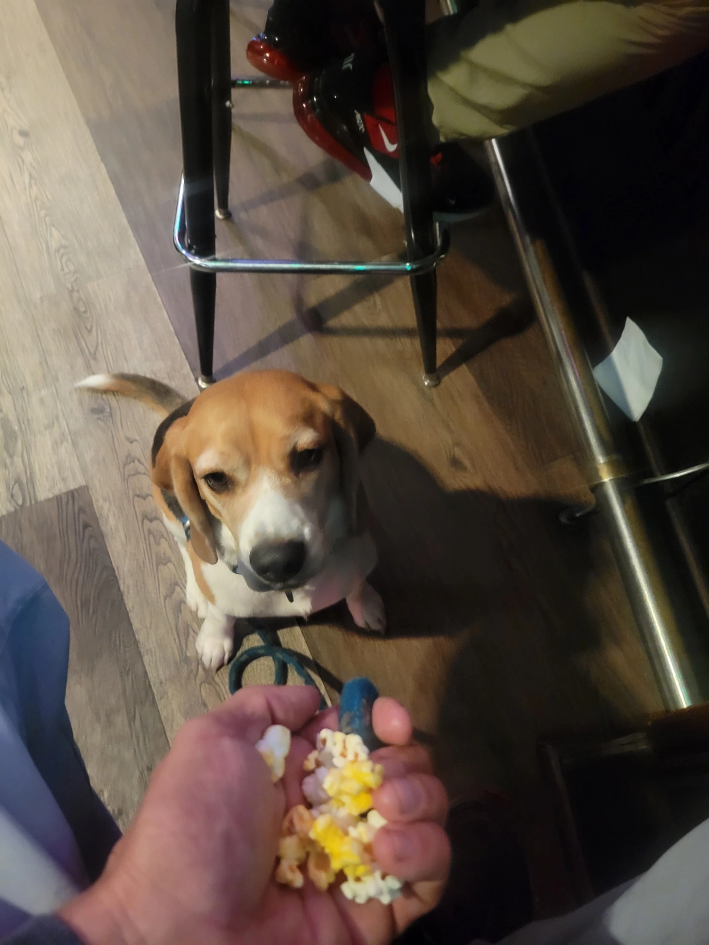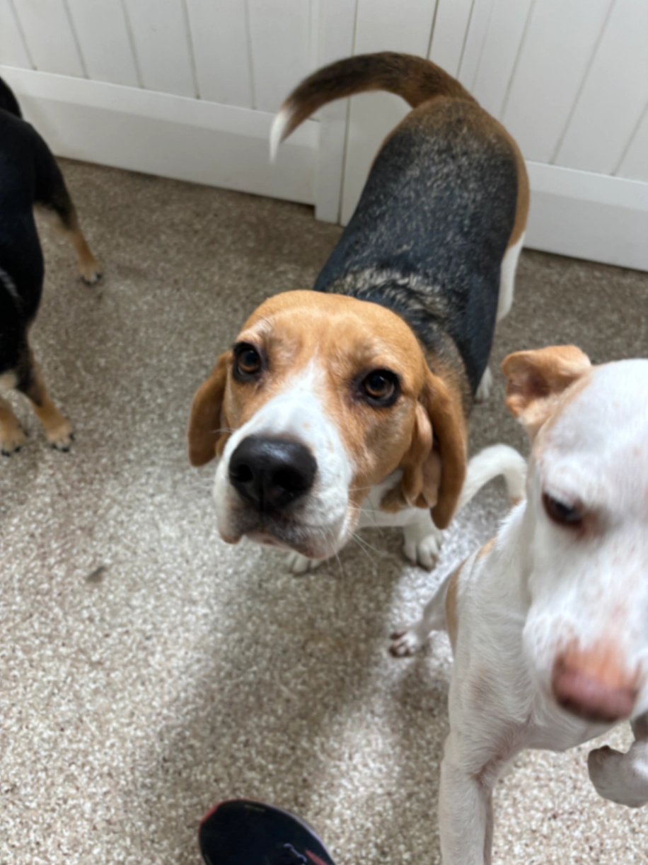 Friendly beagle relatively quiet.