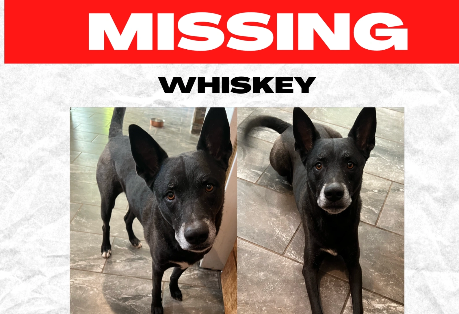 Black has white around his nose. Is 5 years old.