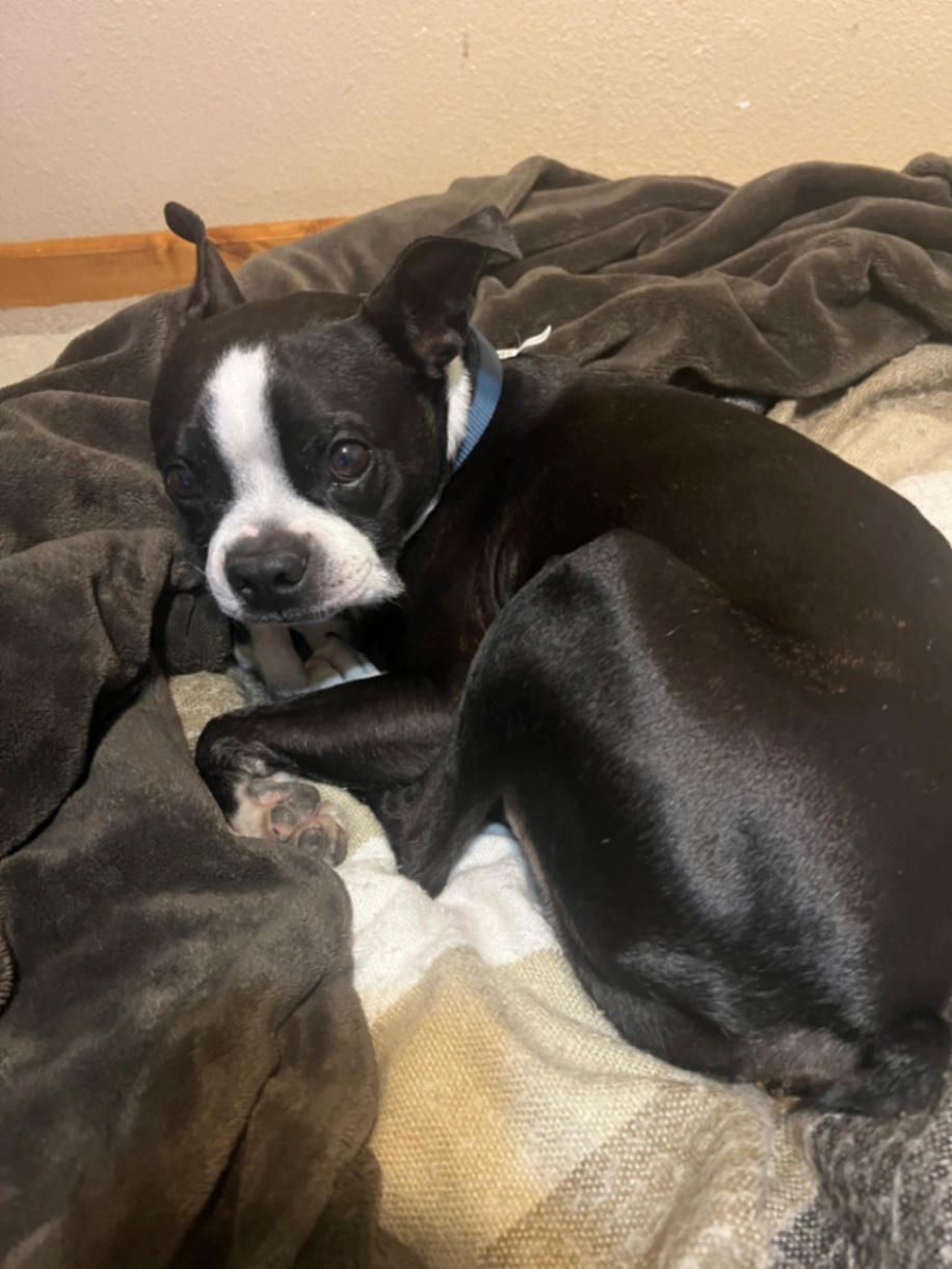 He is an extremely friendly Boston terrier that rarely barks please help get him back he means a lot to my ptsd affected father