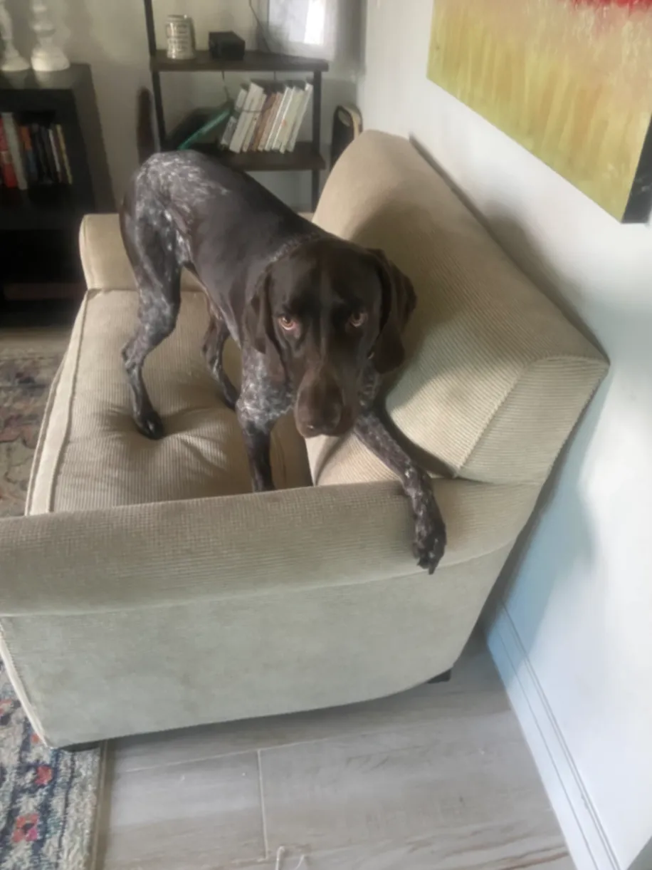 If he calls his name, he will come to you. He’s a really nice dog gets along with any buddy or any other dog. I took his collar off because he was itching around his neck and I fell asleep. I got up to let him out to go to the bathroom. He started barking. I went to go check to find out he took off. He loves to hunt so I’m sure he’s looking for any rabbits or birds.