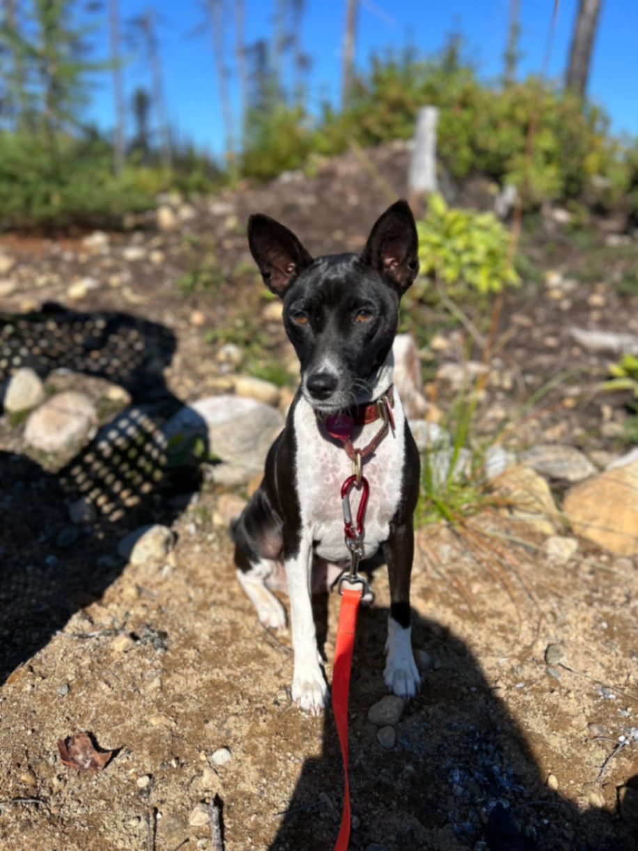 Chien race basenji, femelle noire et blanche 22 livres