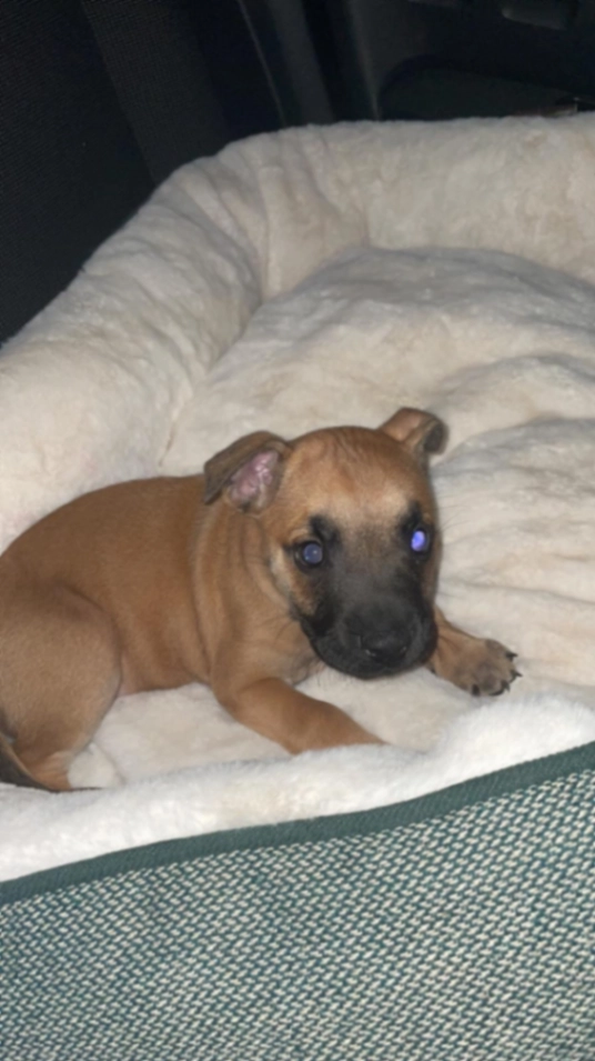 Comfort is a bit bigger now as she is 12 weeks old. She has brown fur and black nose. She was wearing a leopard print collar when she was taken. She has dark paws.