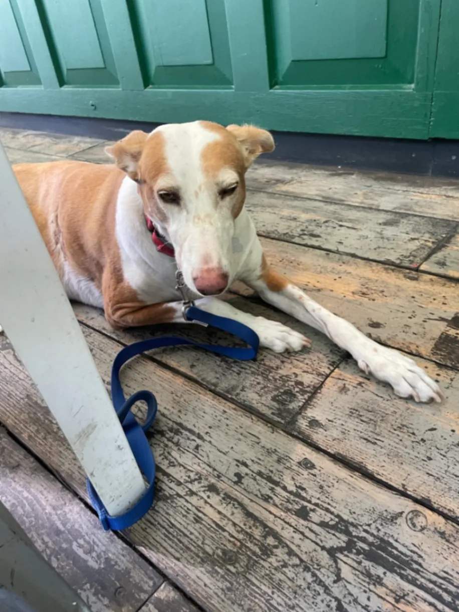 Medium size dog , light brown/tan color, short hair. She is very loved and we are extremely worried. She may be scared, so please approach gently.