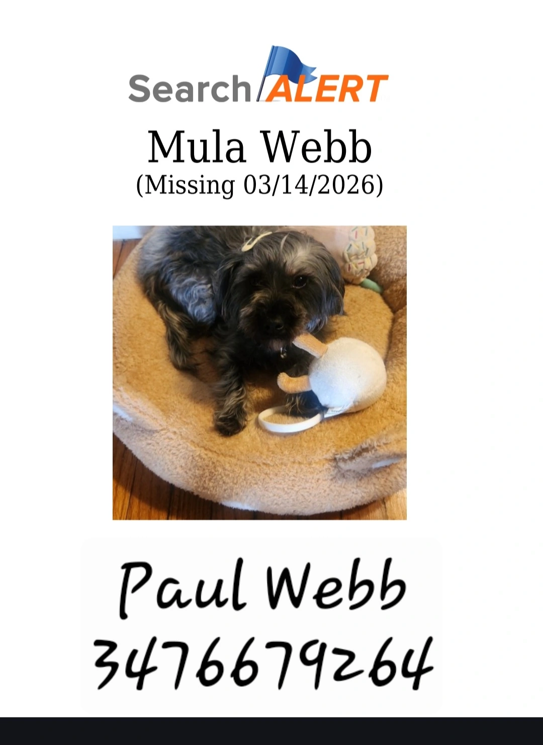 SpicyReunited after4h, 42minThank you for all your help! The efficiency in which Spicy was found and returned is amazing! Can’t thank you enough!