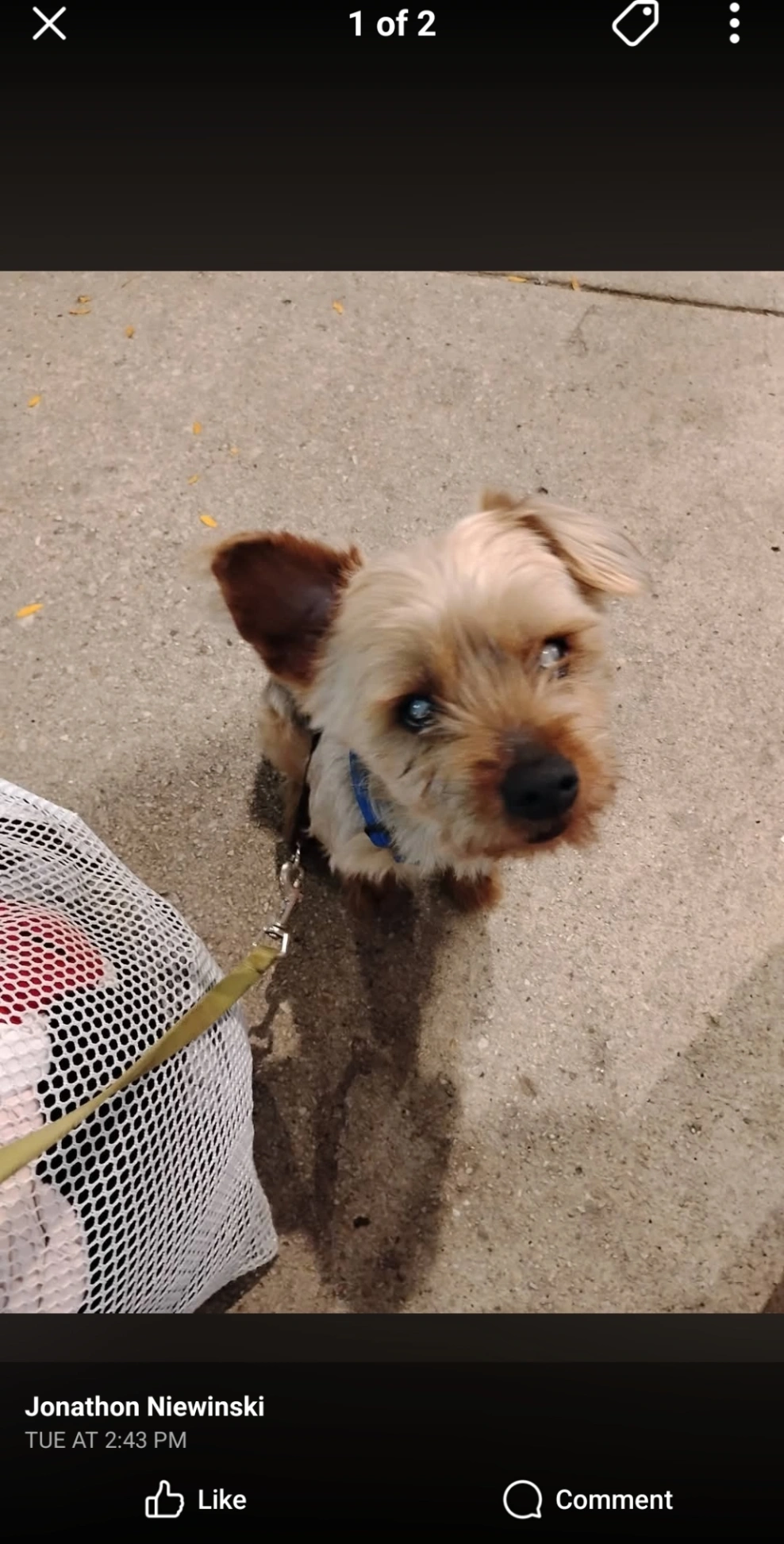 He is 6 and blind in both eyes.lost by montrose,Sheridan and Broadway in chicago.