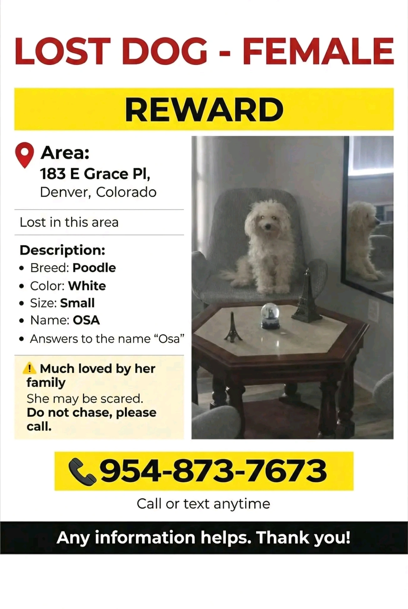 Se llama niña es mi pequeña perrita comunicación 7204250135 es parte de mi familia estamos muy tristes estamos buscándola