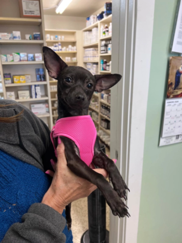 She’s a Chihuahua with a pink harness