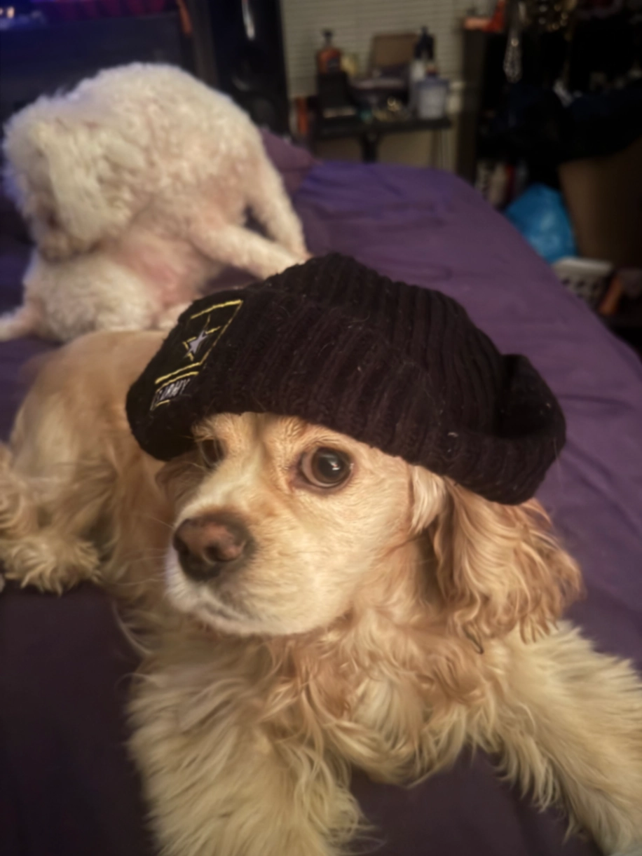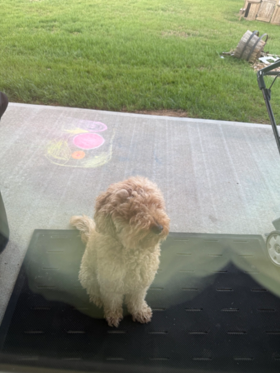 Light brown Goldendoodle about 40lbs. Very loving and energetic .