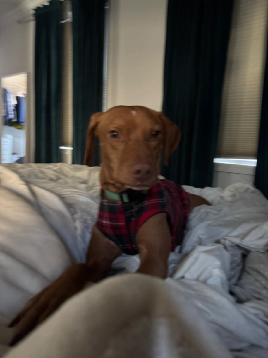Wonder is a small/medium brown Vizsla. He is about 40 lbs and super friendly.