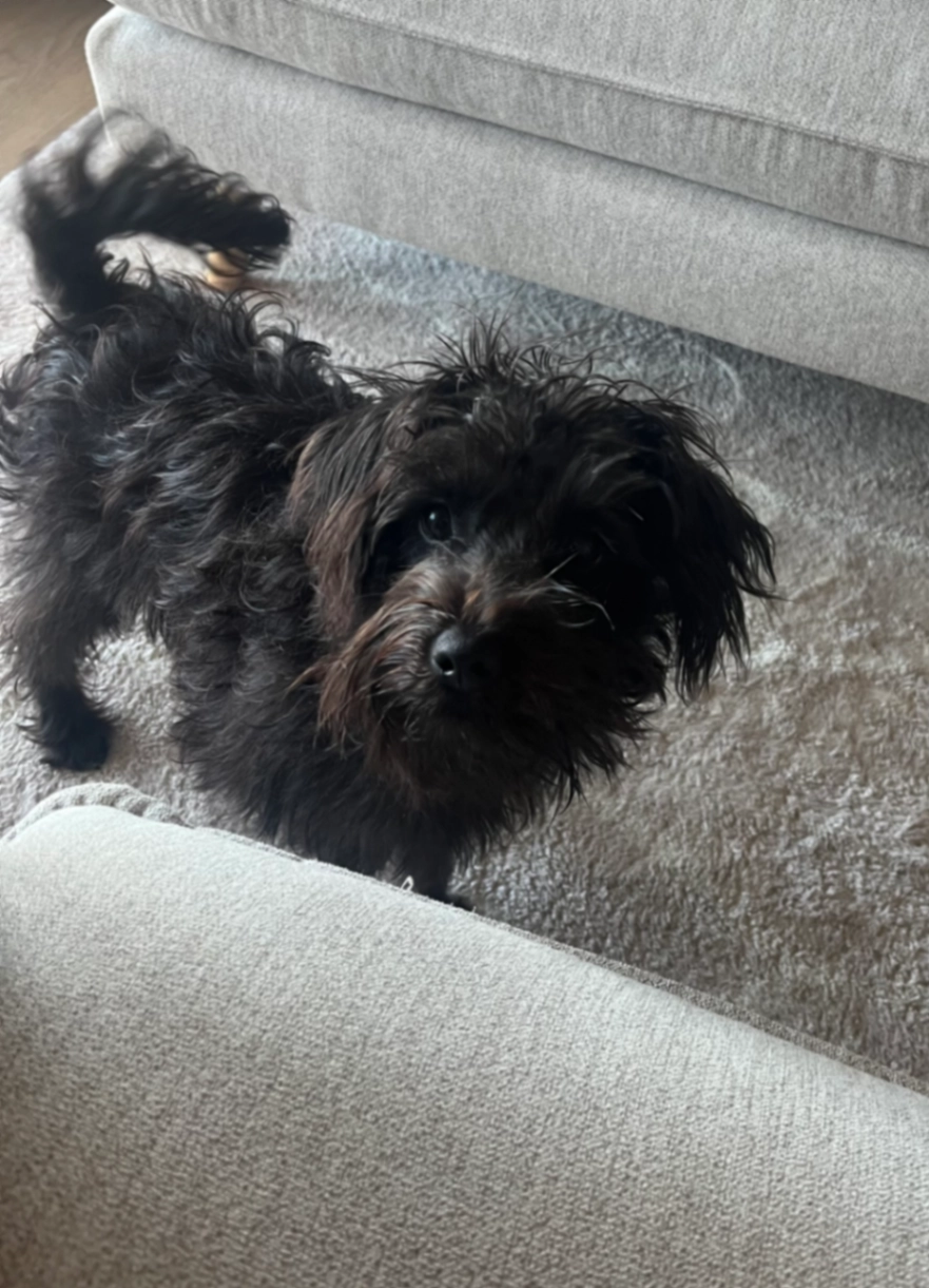 Small Miniature Schnoodle. A little scared of stangers but will answer to Winnie