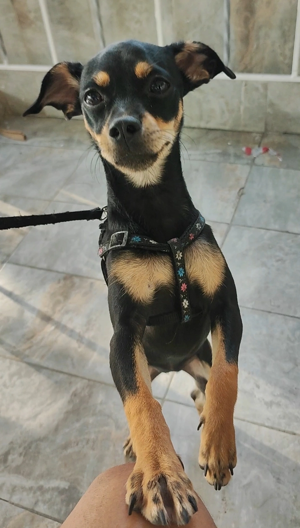 Está enfermito, tiene una parte del muslo sin pelo y tiene la pechera de la foto