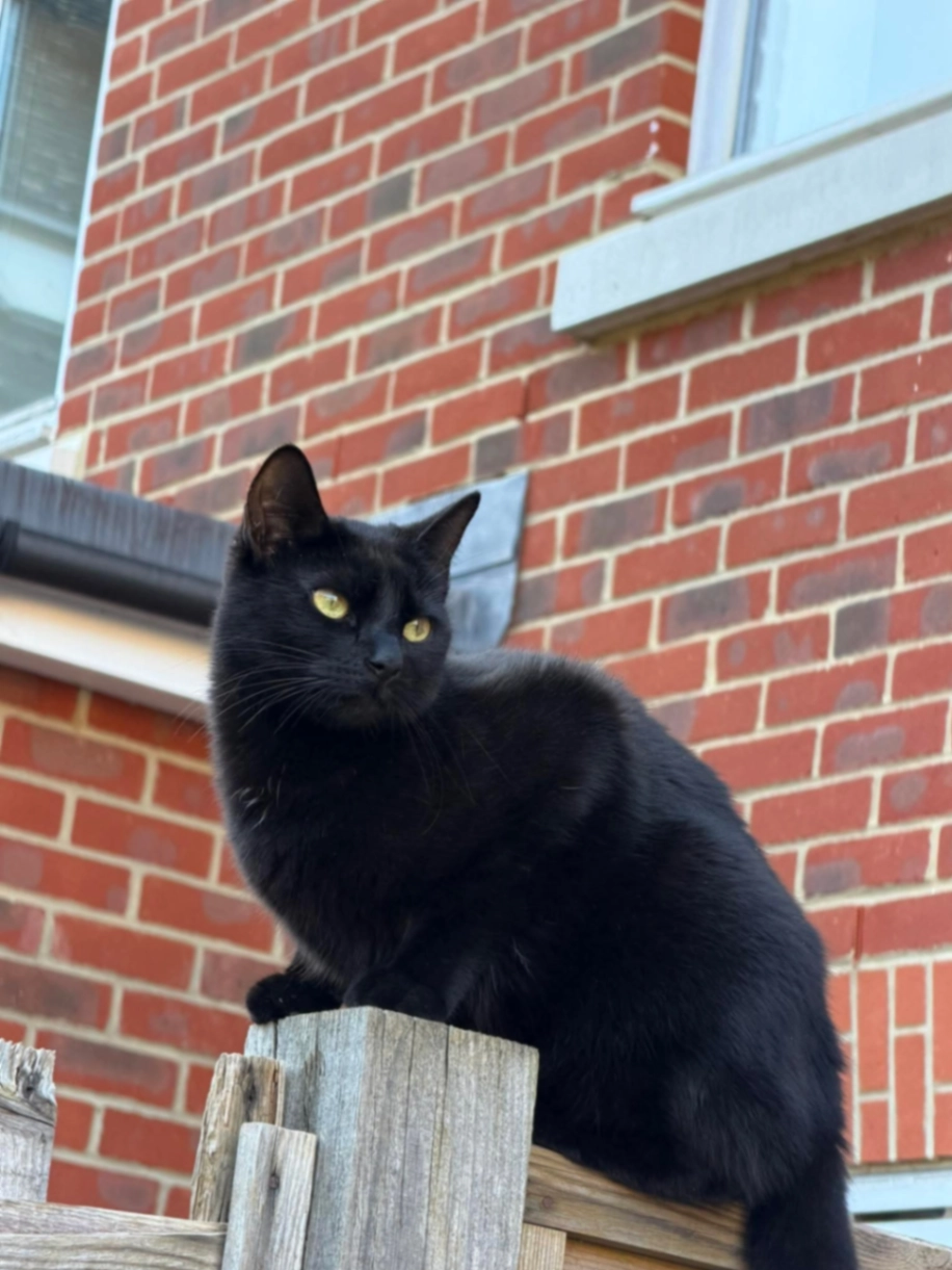 Tirana is a British short hair house cat. She is 7 months old. She is get in colour and very placid. She does not have a collar on her.