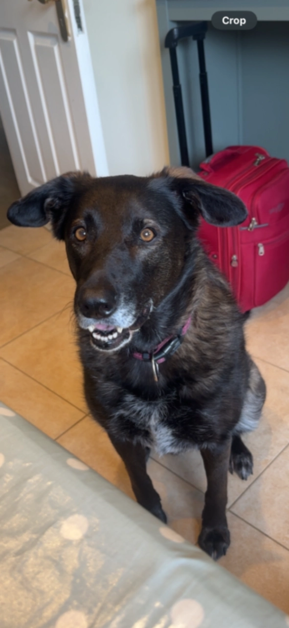 Black Lab/Alsatian. Pink Collar. Microchipped