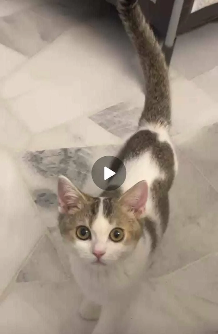 British Shorthair, solid grey-brown, with a long tail. Very shy and easily scared of people, but knows and responds to her name.
