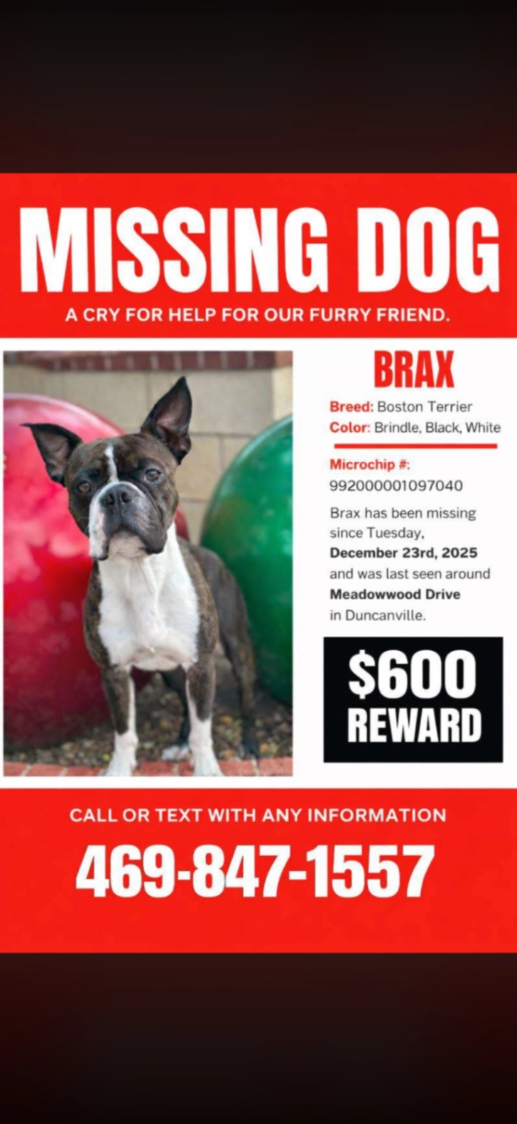 BoReunited after1d, 2hThank you for the flyer which lead to direct involvement and his reunifucation