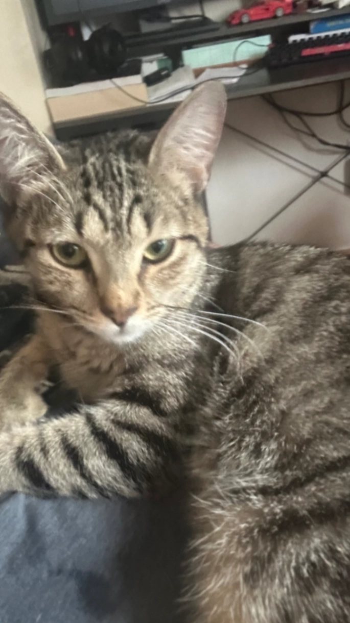 Rayito is a very affectionate and fearful cat, he is around 10 months old. You could call 3475348280