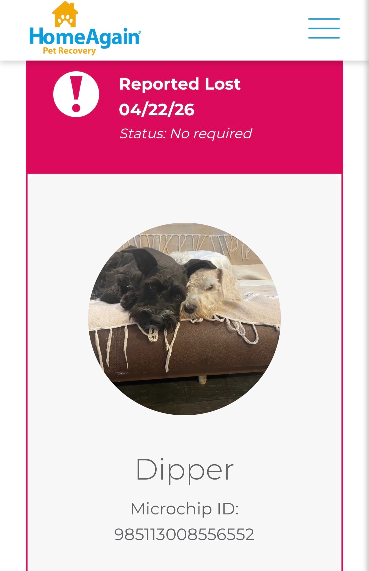 SpicyReunited after4h, 42minThank you for all your help! The efficiency in which Spicy was found and returned is amazing! Can’t thank you enough!