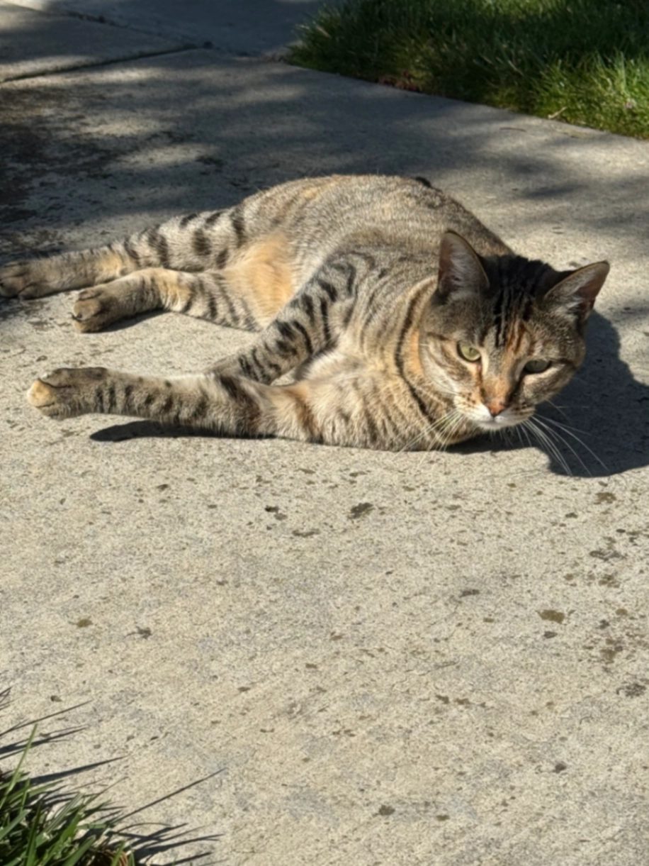 She’s a smaller cat with a lighter spot above her left eye. she is very active but isn’t super friendly. she gets scared and will hide