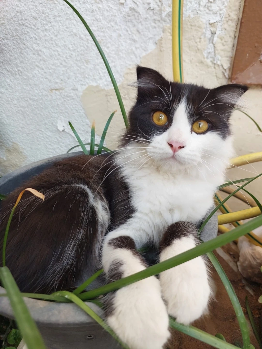 He is a neutered male cat, with pretty gold eyes and white black fur. PLEASE help me find my baby!!!