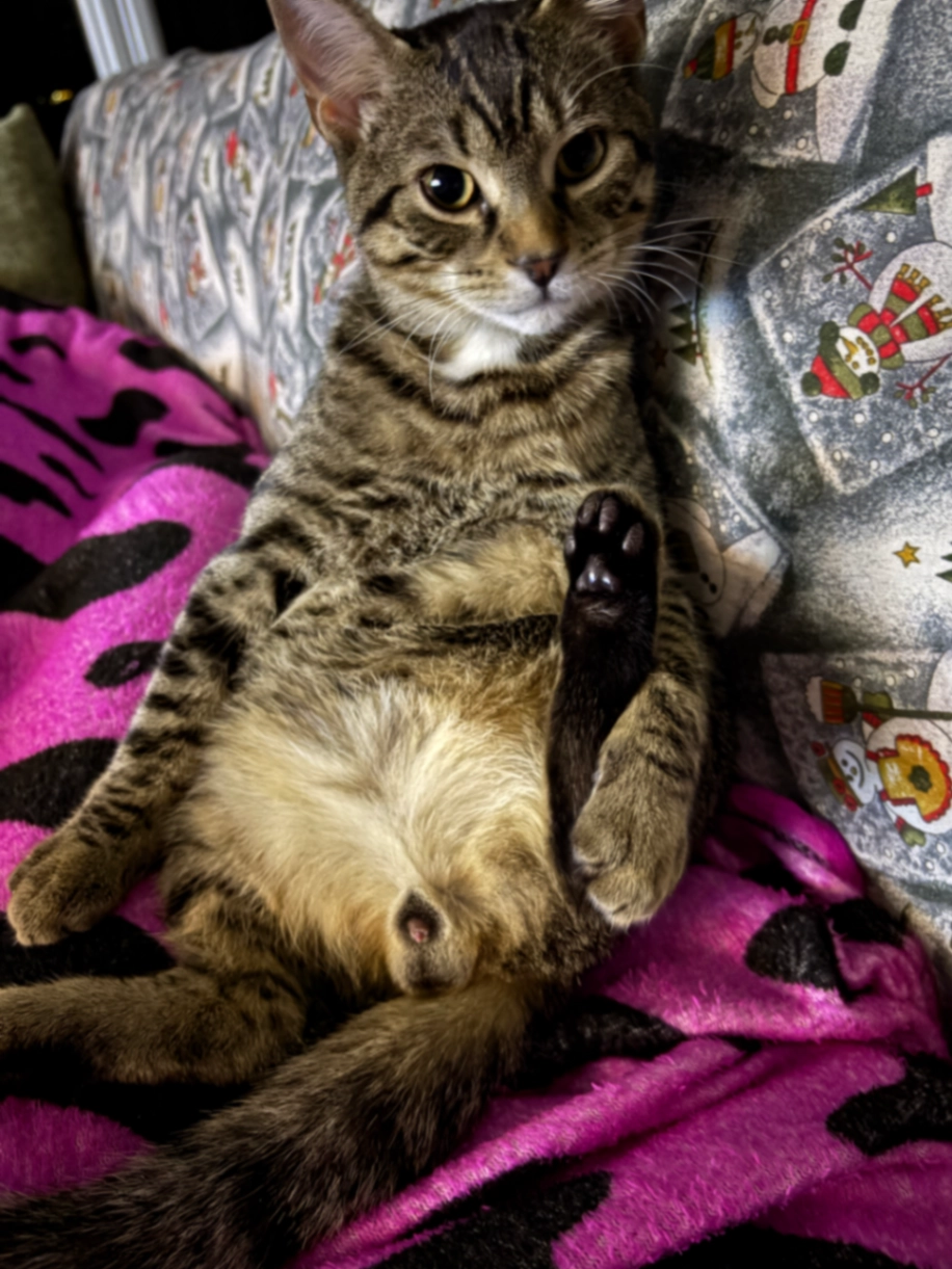 Tachoux est un vieux chat, mal domestique, non puce dégriffé au quatre pattes, un chat très docile avec les autres chats et chiens facile d'approche
