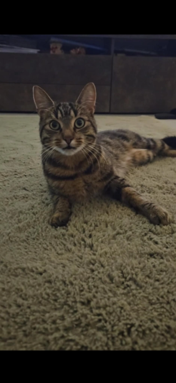 Eher ängstlich. Lässt sich aber ggf. Mit Leckerli locken. Hat spröde Lippen und Pfoten wegen einer Allergie, sieht man aber nur, wenn man nah dran ist.