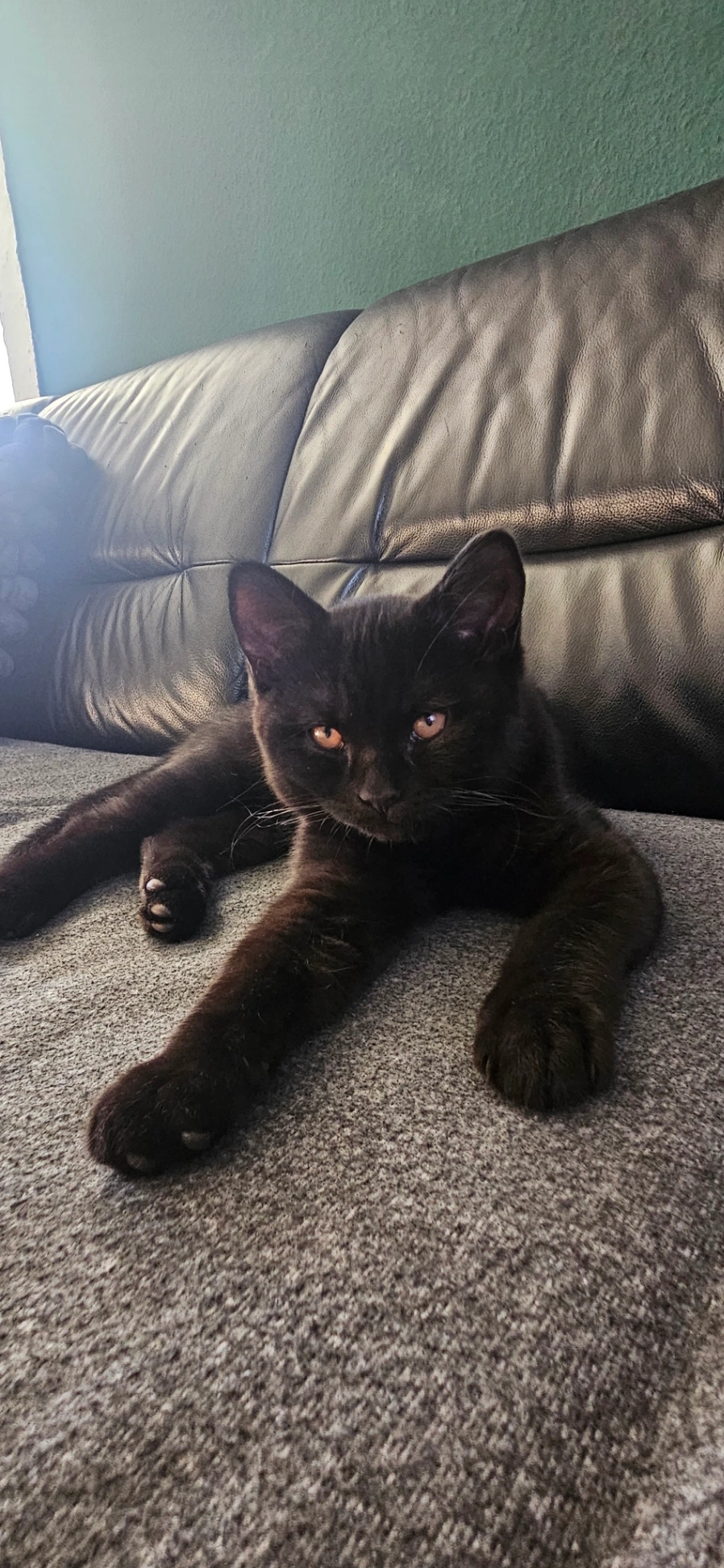 Balu ist ein 5 Monate alter Kater. Er ist komplett schwarz. Er miaut nicht richtig sondern "quietscht" eher. Eigentlich ist er zutraulich. Er ist nicht gewohnt draußen zu sein und kennt sich leider draußen auch nicht aus.