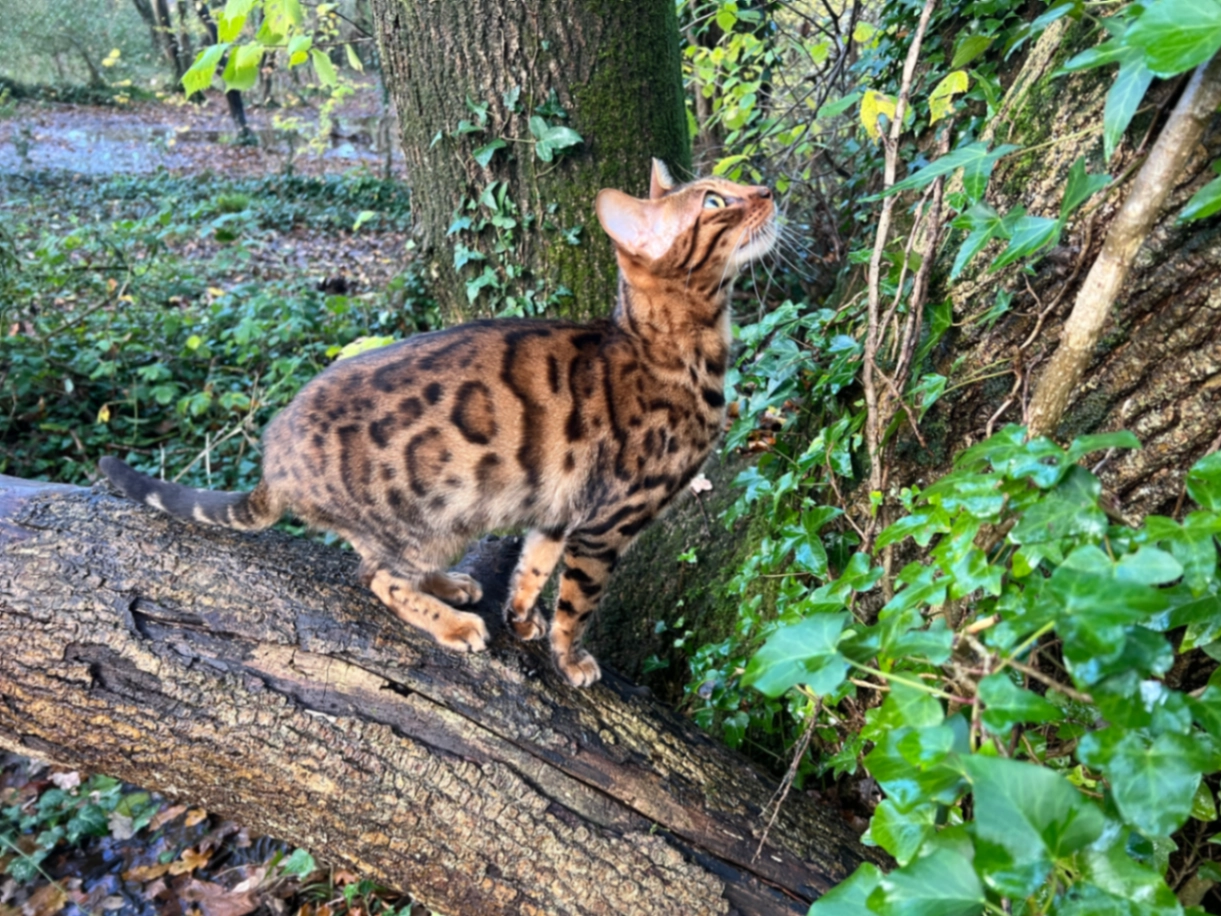 Smaller cat, not fully grown. Not neutered may be seen closer to other cats.