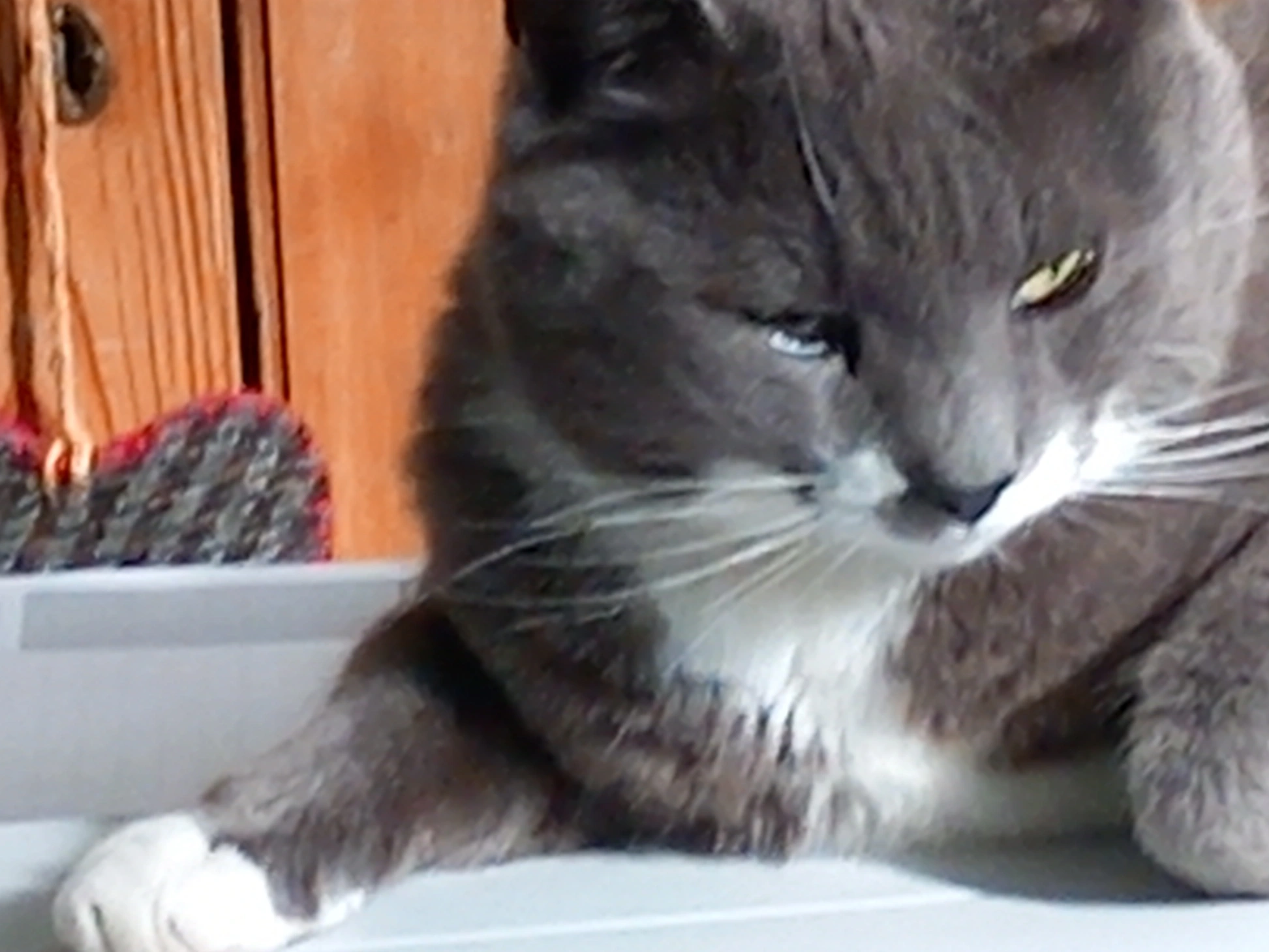 This is Greyjoy who is missing from Brightlingsea. He is a lovely grey cat with white socks on his feet. Very good natured, and doesn’t usually go far from his home.
