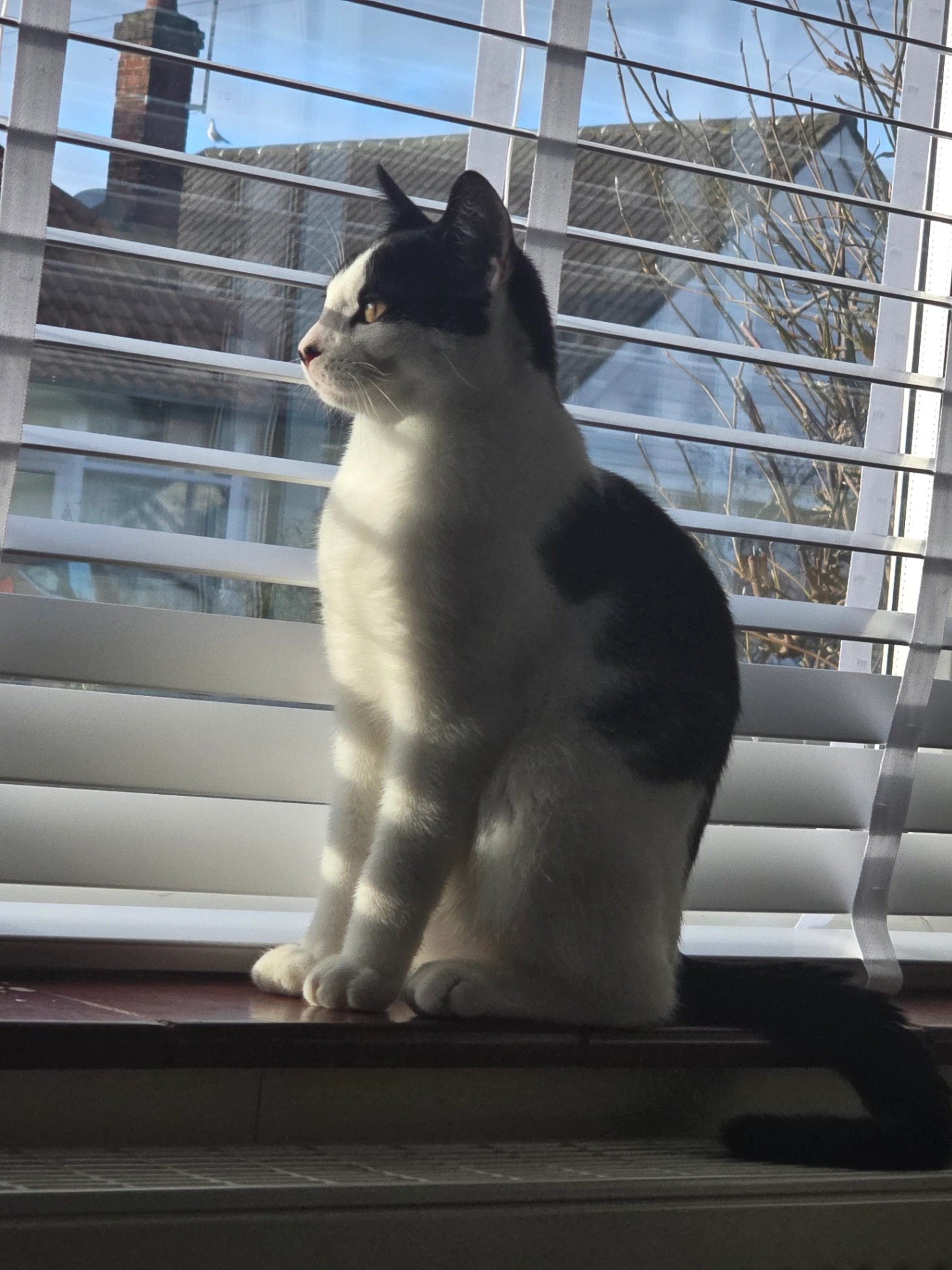 Bob is only 7 month old black and white and very friendly. He is quite small and has black patches over both if his eyes. No collar but its chipped.