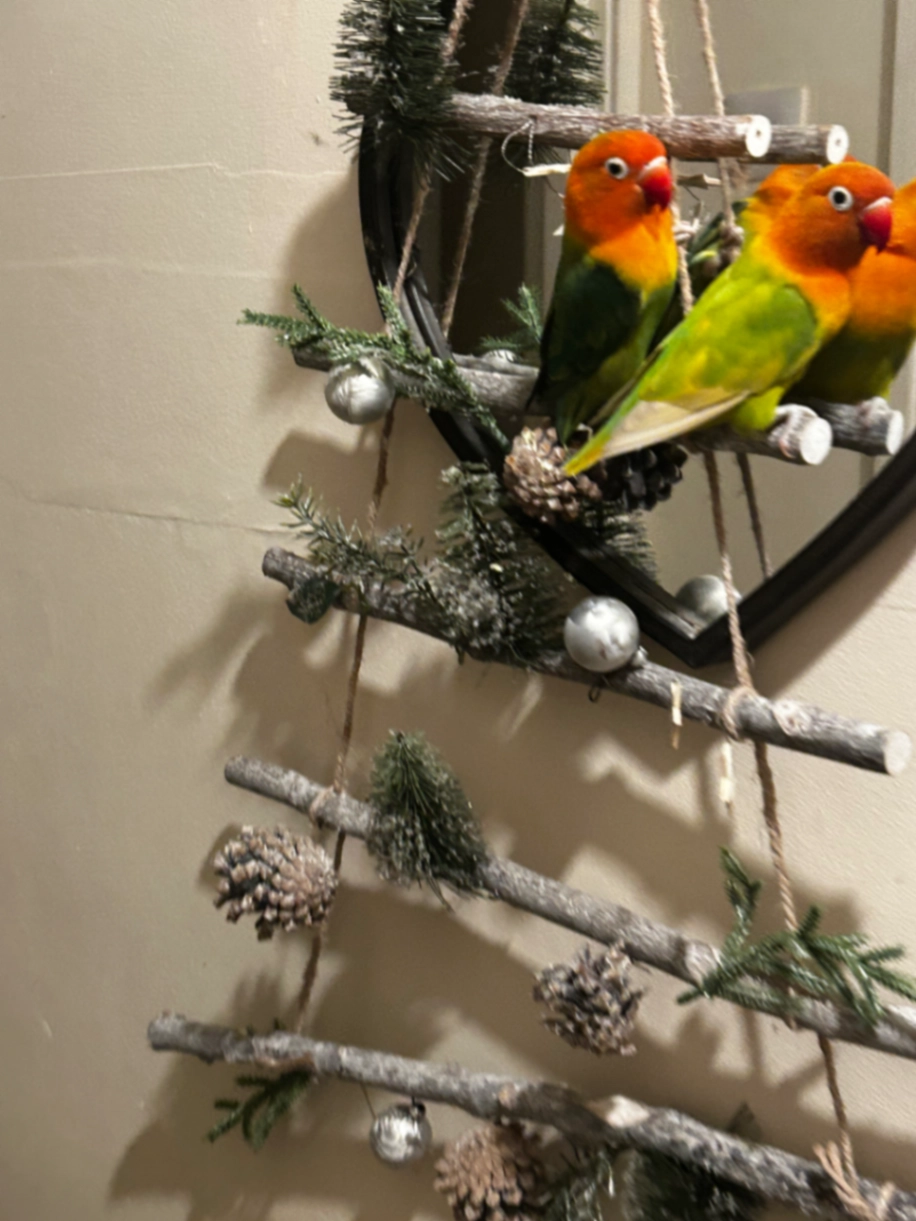 Green lovebird red beak