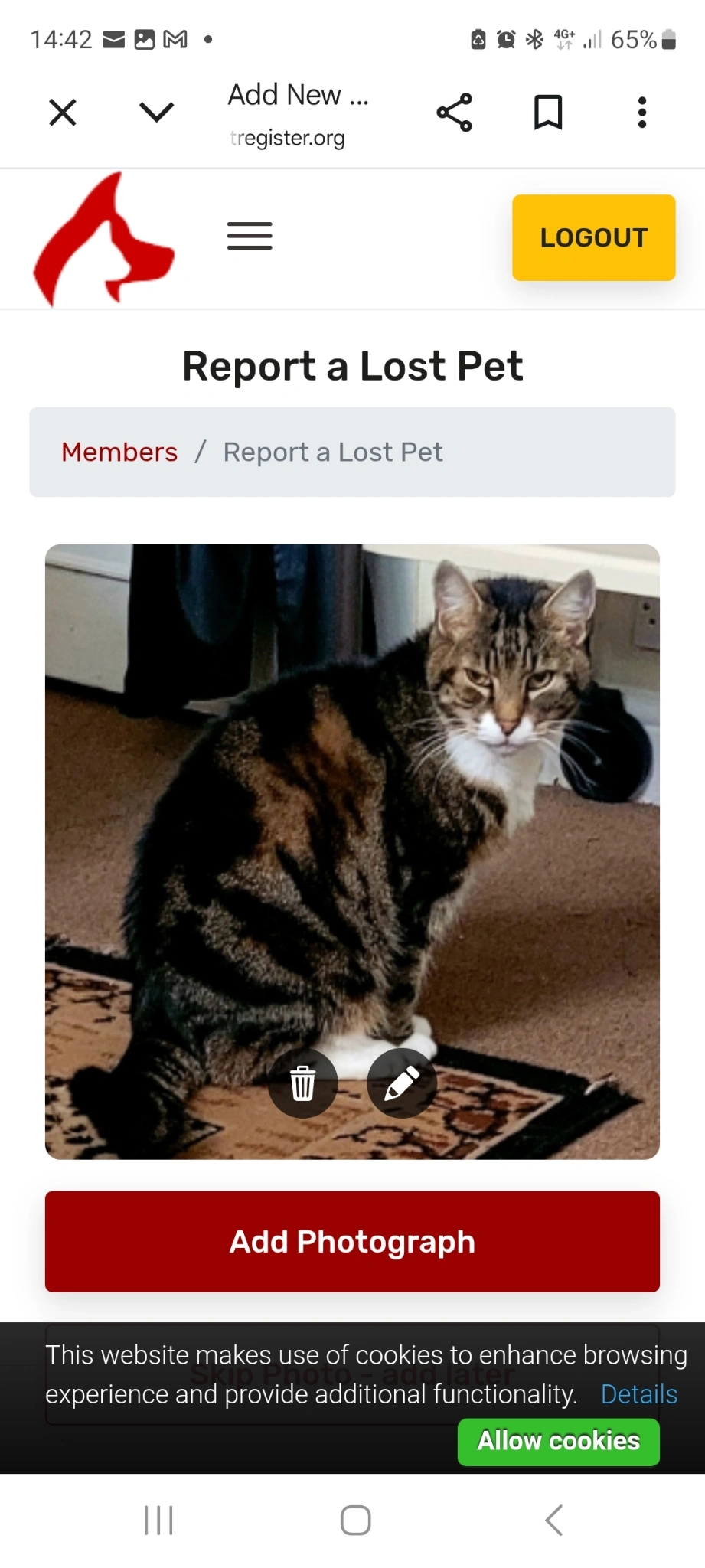 GeoffReunited after4d, 13hPetRadar found out cat! Thank you so much. He was missing for a week in December when it was really cold and we were incredibly worried. 1 week after he went missing, we got a comment on the petradar Instagram post that someone had found him over a mile from home. And we were reunited 😃 thank you!!