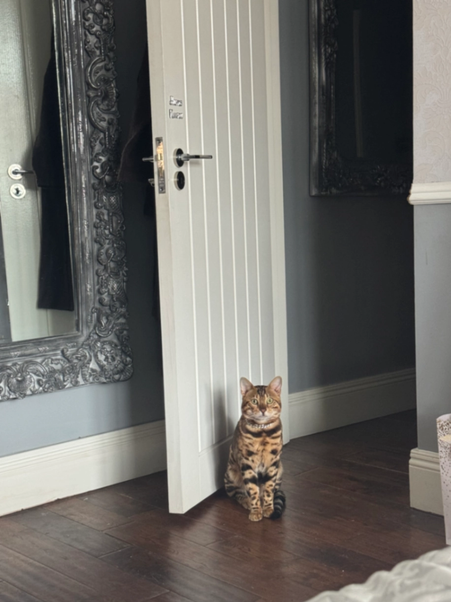 Zeeko is a 8 month old Rosetta Bengal who is an indoor cat. He has specialist food due to being lactose intolerant and will get very sick if given the wrong foods. Very friendly and has very clear patten. Was wearing a grey diamond collar with bell.