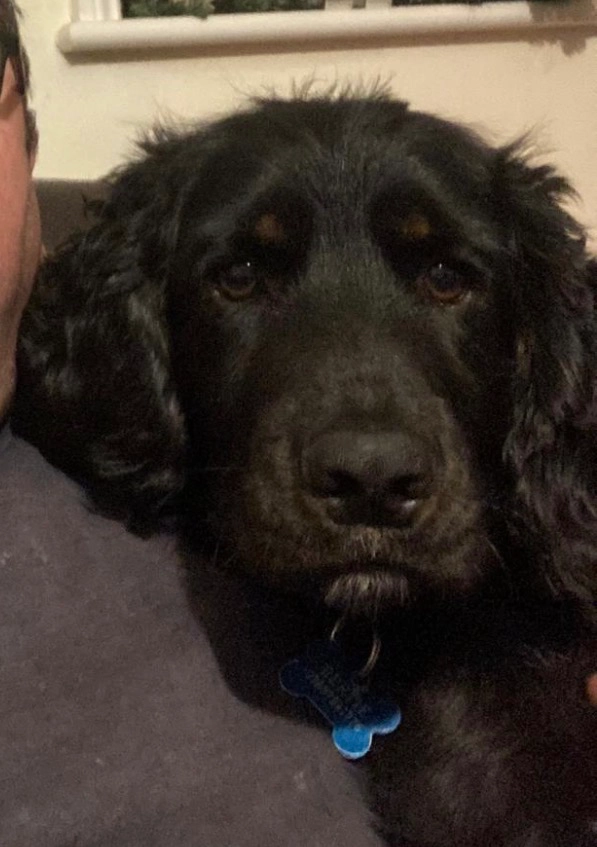 He is a bit scruffy looking cross poodle black going grey in places. He has still got 1 baby tooth .his weight is 4.8 k.