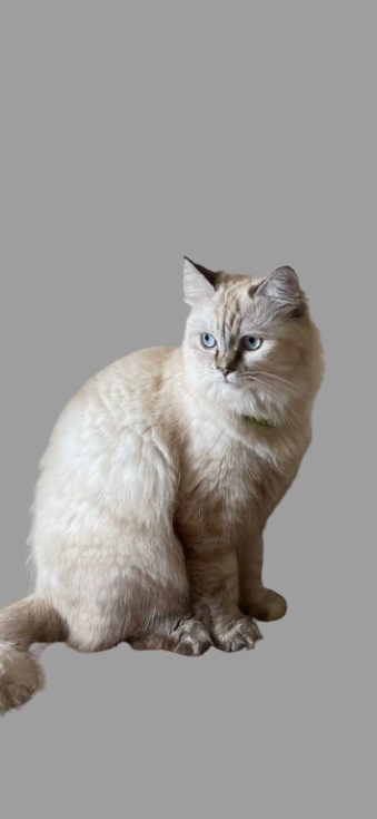 White fur, blue eyes - slightly pinkish nose with black spots on his nose