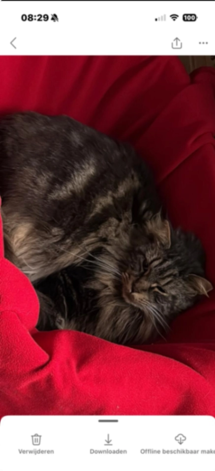 Het is een wat gezette Maincoon. Erg nieuwsgierig