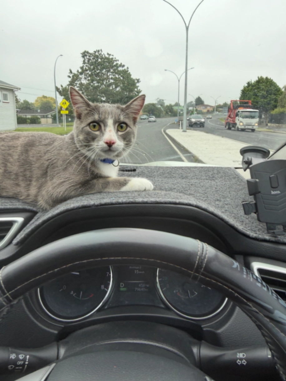 Yes a 10 month old big ish boy. Grey on top and white at the bottom bit. He’s a domestic short to medium hair and has a blue collar on without a bell.