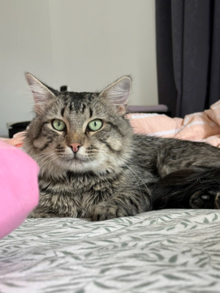 Popo is a tabby-mainecoon mix, he has a blue necklace, with long fur and stripes as shown in the picture. He went missing near Golden Sands East, close to New World the Sands. If anyone see Popo, please call me in this phone number 0225139283
