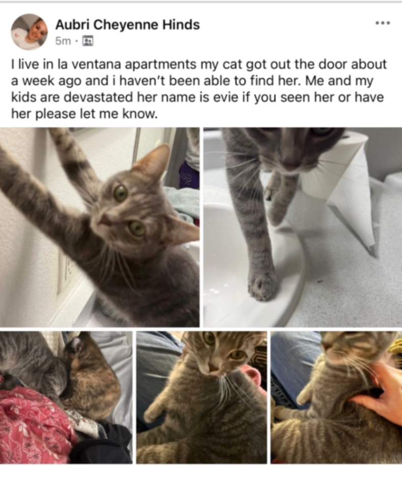 ZoeeReunited after3d, 14hThank you so much for this service. The information provided helped us not to lost our minds during the time our cat was lost!