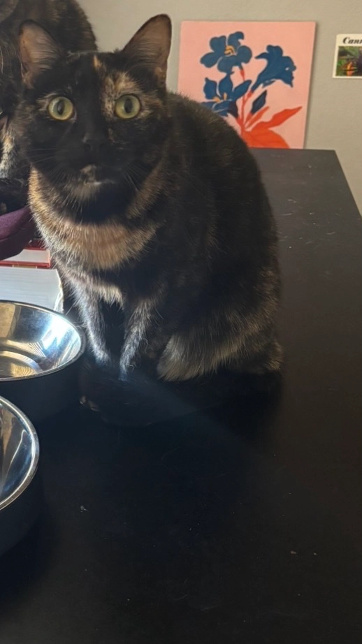 Super friendly and vocal female tortie missing around Cottonwood. Chipped and collared.