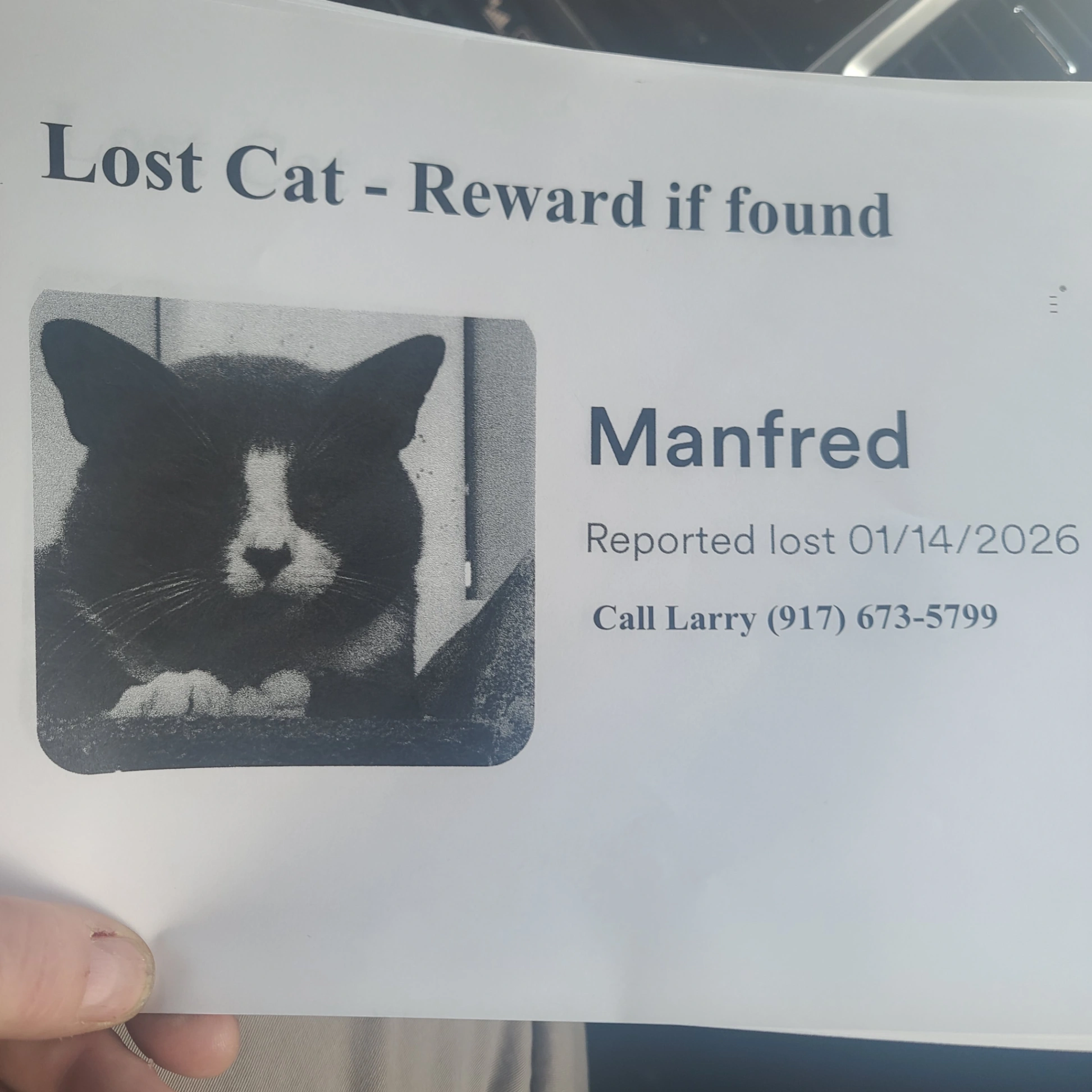WayneReunited after1d, 8hThe flyer that you made was the reason we were able to find him because we posted the flyers to people all around the neighborhood and someone who was not on social media saw the flyer and had him.