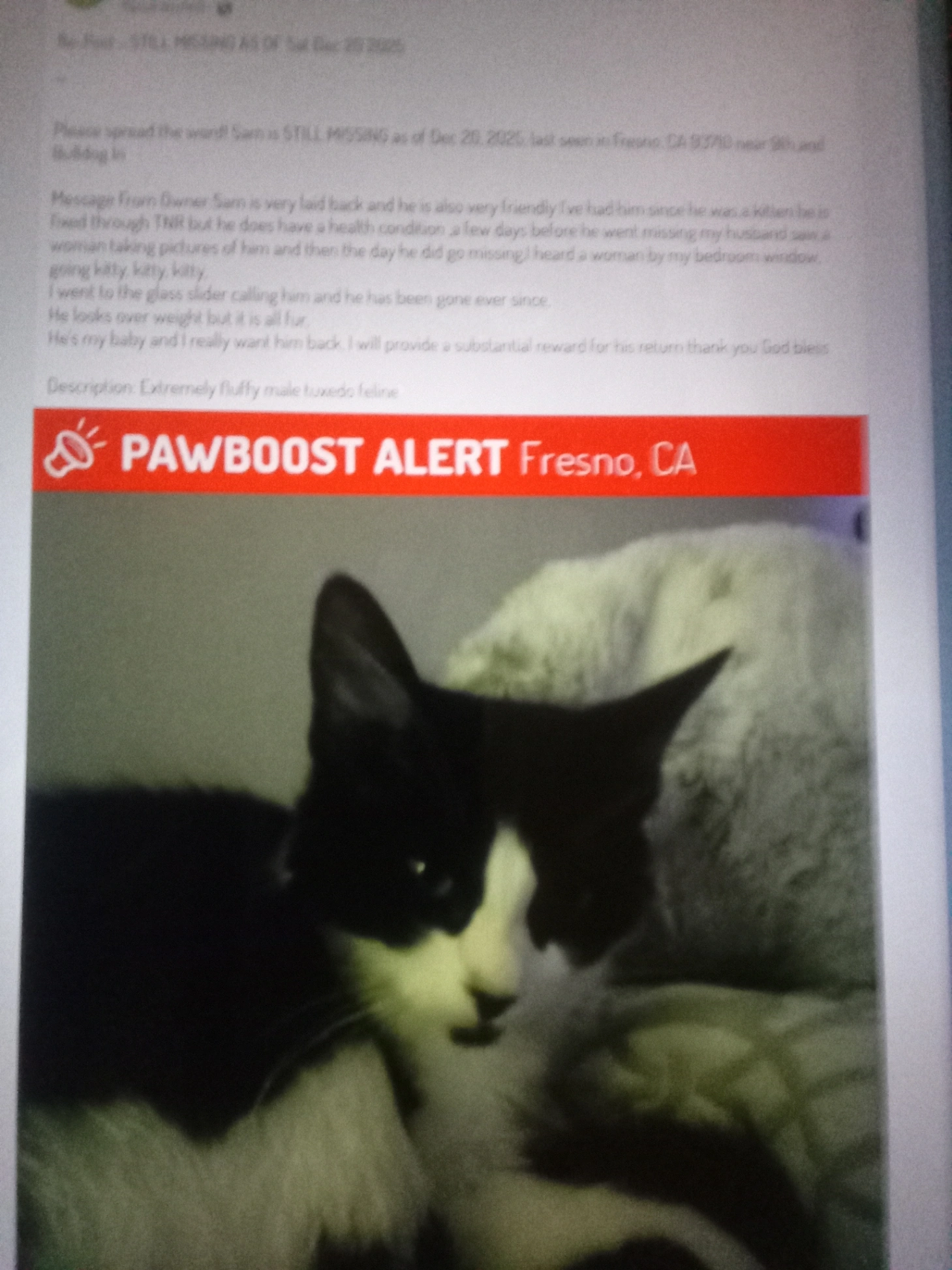 LukeyReunited after1w, 4dA great avenue to spread the word & many people reached out with cats that looked like him & offered tips & prayers for us to be united. He showed up at my patio door 3:30am this morning after being missing 15 days & nights.