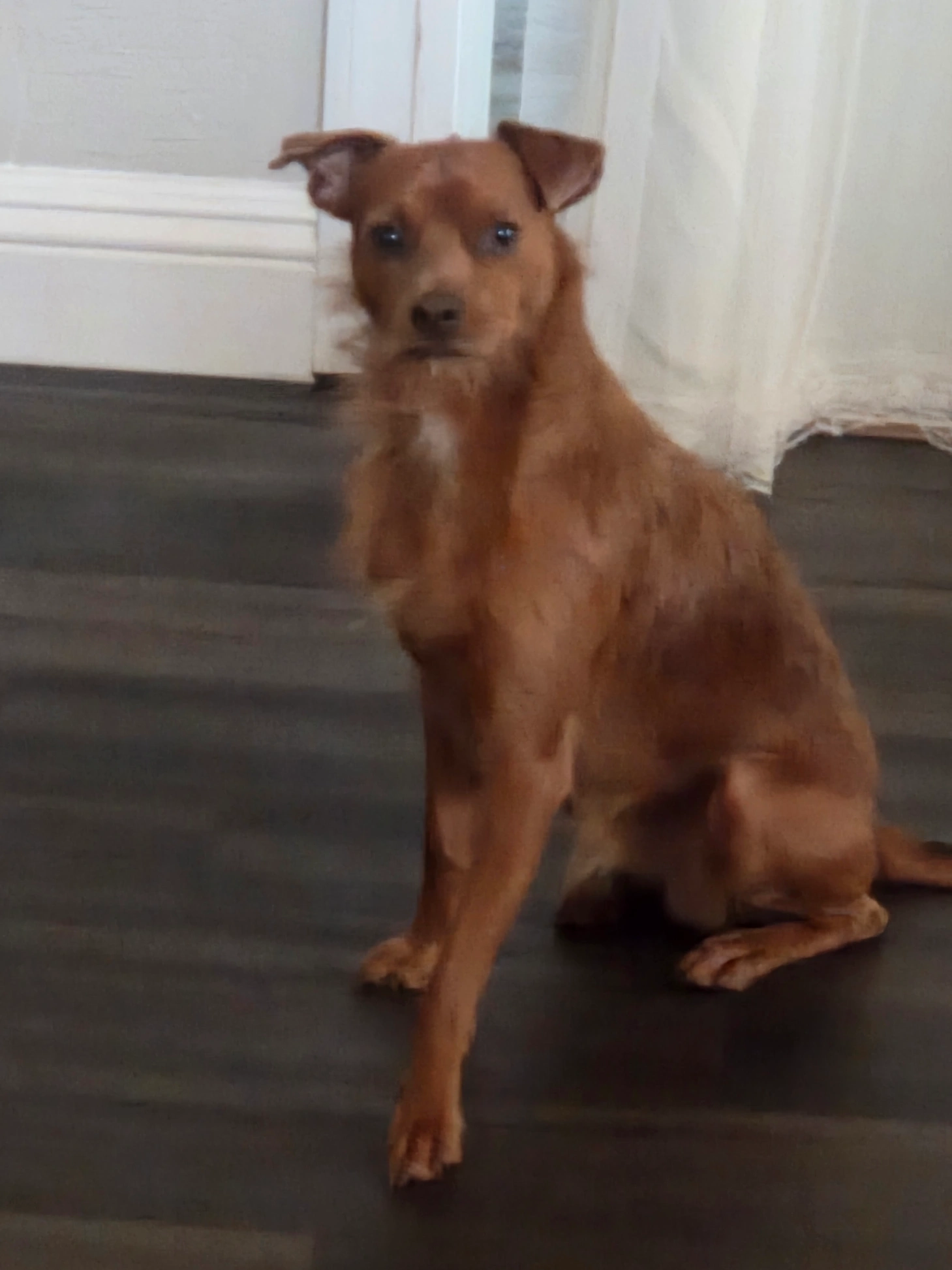 She's a Chihuahua pug puppy and she's super sweet please don't yell at her she's sensitive and I love her attitude and personality